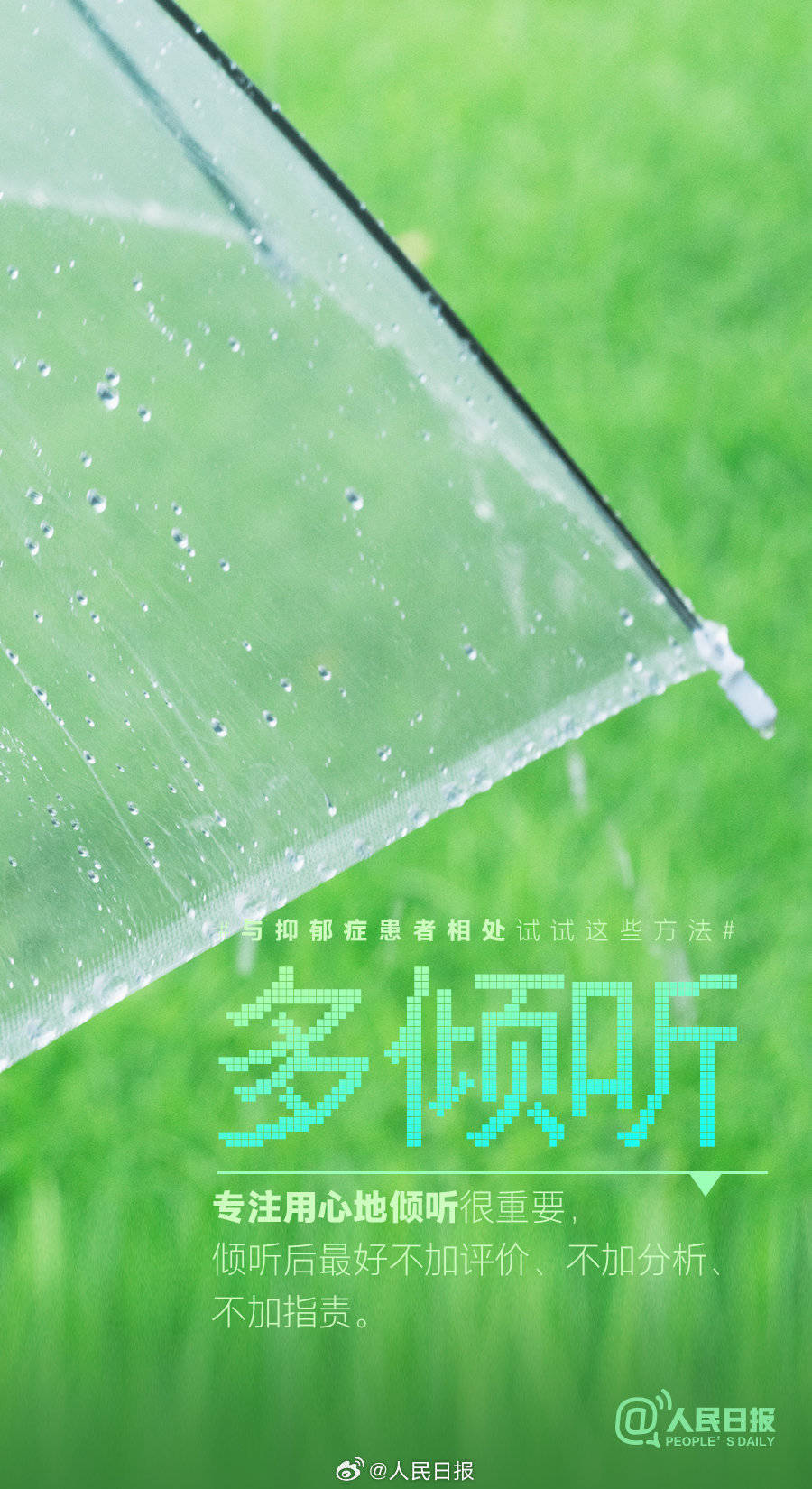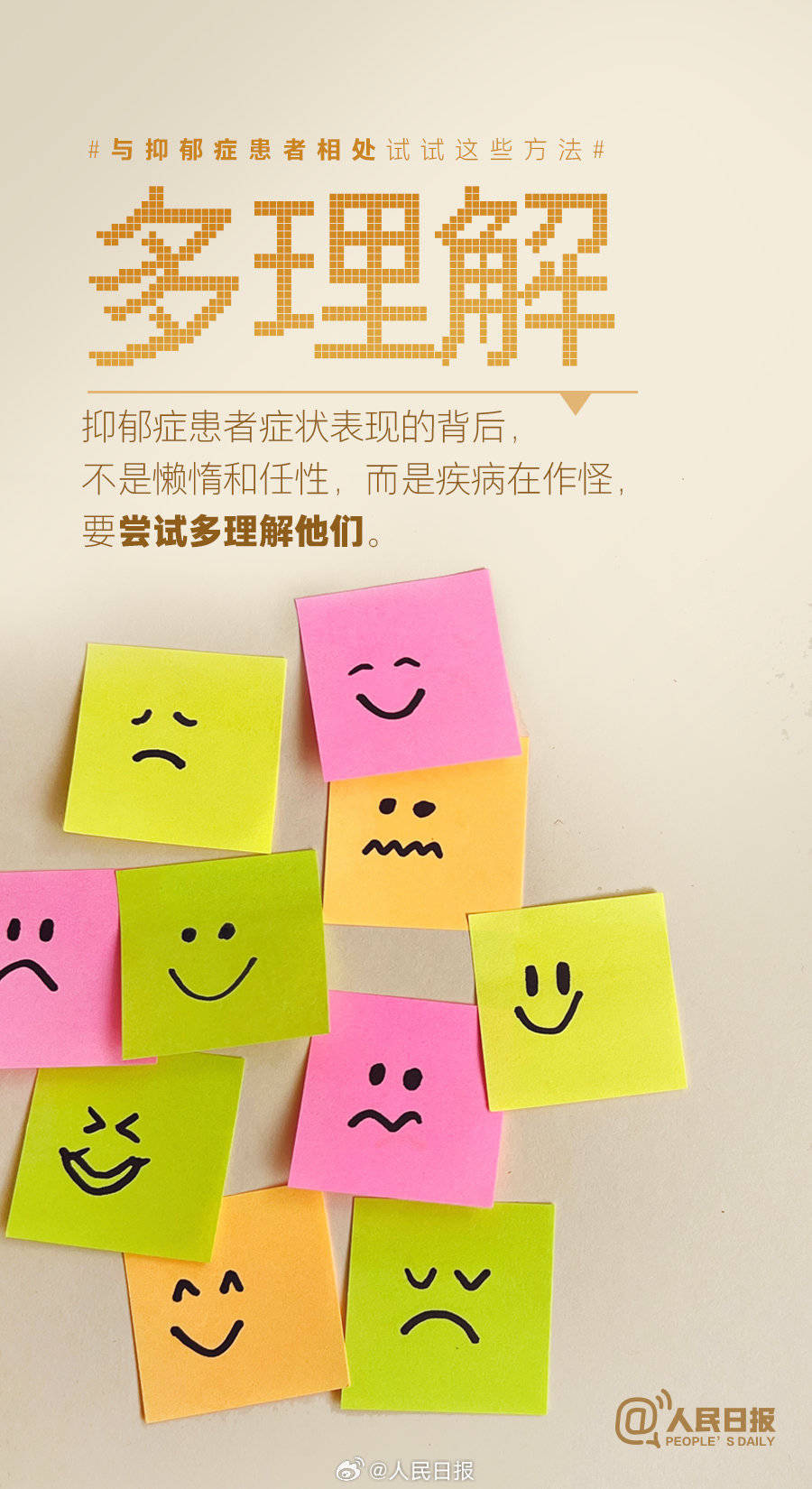 抑郁症≠抑郁情绪,不是仅靠自我振奋就能好转的。多理解倾听、多关心配合、不盲目建议、不指责……今天是世界精神卫生日,一起了解。